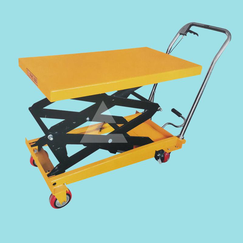 有客戶在倉庫使用350公斤升降液壓平臺車的過程中,出現了上升后自動下降的情況,這是什么緣故呢?