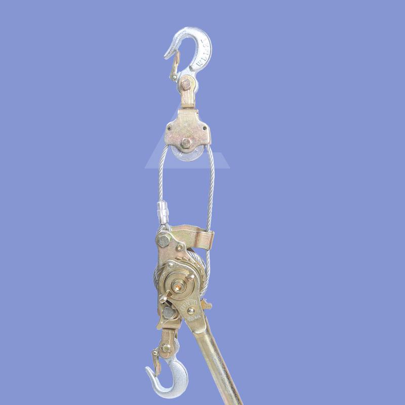 鋼絲繩棘輪收緊器又叫做荷締機,是在電力電線施工過程中作為拉緊導線用的。這也是現(xiàn)在很多行業(yè)比較常用到的一款牽引工具。張力緊線器在使用的時候,需要先把緊線器上面的那個鋼絲繩松開,固定在橫擔上,用夾線鉗來夾住導線,然后扳動扳手。由于棘爪的防逆轉作業(yè),可以把鋼絲繩繞在棘輪滾筒上,使得導線收緊。把收緊的導線固定在那個絕緣子上面。牽引工具廠家撼馬生產的荷締機可松可緊,手柄是360度自由轉動,使用起來比較方便。